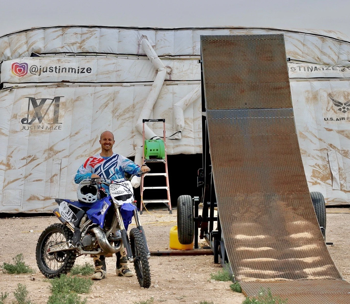 My team WTFMX (West Texas Freestyle Motocross) has made crazy progress as well, with big Mike “Braaabst” weighing 260lbs jumping 75’, and Kalobe (pronounced K’lob-E) flipping consistently at 50’ and tricking at 65’ no problem. The near future I believe we will be flipping (both forward and backwards) and getting more traction for shows and competitions as we continue developing our abilities on and off the bike.
